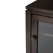 - Features two sliding tempered glass doors that open to a cabinet with two adjustable shelves