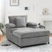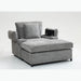 Clever Storage Armrest: The chaise longue's armrest features concealed storage, slow lowering covers to prevent pinching, and pockets on both sides for magazines, enhancing space functionality by neatly storing essentials.