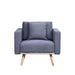 • This mid-century modern chair comes with 1 pillow, USB charging ports, and pocket for your magazine, books, or hold your charging phone. The square arms and round tapered solid wood legs with a bottom wood trim offers the trendiest look for your home. Comfortable cushion seating and linen fabric, stylish design, and quality material. Complete your living room dcor with the Easton collection.
