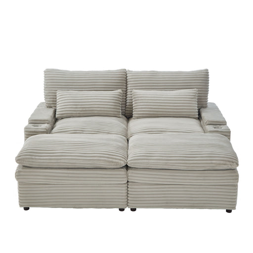 Modern Minimalist Corduroy Combination Sofa With 2 Comfort Cushions With USB & C Charging Ports