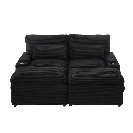 Convertible Loveseat Sofa With Storage, USB Ports, Cup Holders - Black