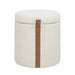 Brandy - Round Upholstered Storage Ottoman With Leather Accent - Flax White14.0"W x 14.0"D x 16.0"H - 7.0 lb