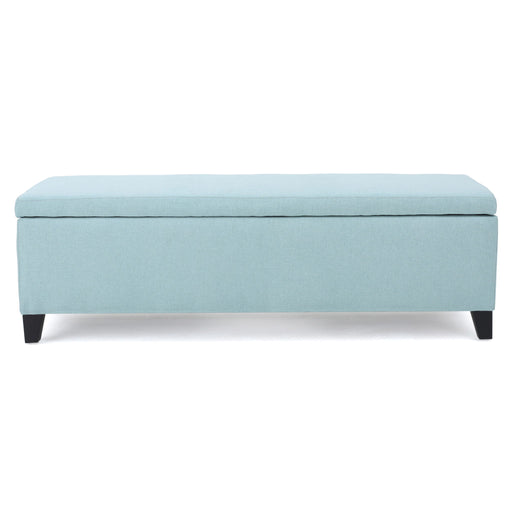 Hand constructed using solid wood, engineered wood, and high-density foam. Upholstered. Features a lift-up lid with hydraulic, child safety hinges...