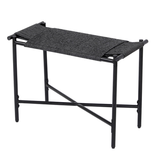 Stylish Design: The Boice Ottoman features a rectangular, armless design with a sleek black fabric cushion, perfectly complemented by a champ...