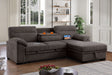 Kipling II - Chenille Fabric Sleeper Sectional Sofa With Right Facing Chaise, Cupholders, USB Charging Port - Dark Gray