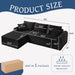 Full Compression Chaise Lounge Set Modular Corduroy Sectional With Arched Armrests Non Slip Base Includes 3 Back Cushions & 2 Throw Pillows - Black