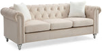 Faux Jeweled Tufted Design: The Raisa Living Room sofa is adorned with a faux jeweled tufted design on its micro suede velvet cover.