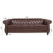 Rolled Arm Chesterfield Three Seater Sofa - Brown84.65"W x 32.09"D x 28.35"H - 95.0 lb