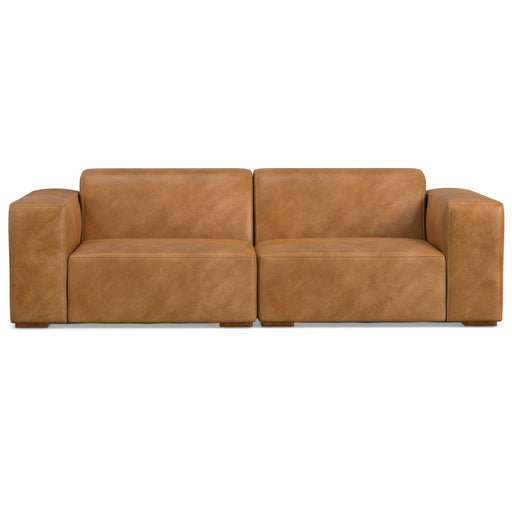 Handcrafted, modern-style leather sofa with a clean, boxy silhouette is an oversized loveseat for people and an ideal choice for smaller living ro...
