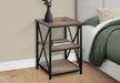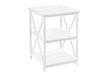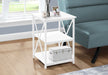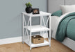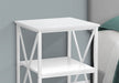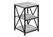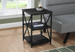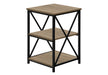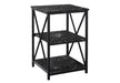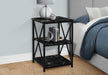 • Design and Finish: This 3-tier accent table features a square tabletop and two storage shelves with a sleek finish. The slender yet sturdy metal base has an X-shaped design on the sides, adding a decorative touch.