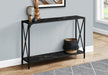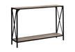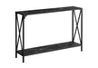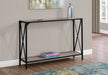 Design and Finish: The console table features a two-tier design with a rectangular tabletop and bottom shelf, all in a sleek finish. The slender metal frame, also in , includes an X-shaped design on the sides, adding a decorative touch while ensuring sturdiness and stability.