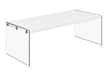 Coffee Table Rectangular, Clear Tempered Glass, Contemporary, Modern - Glossy White44.0"W x 22.0"D x 16.25"H - 37.0 lb