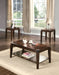 Timeless Charm: This 3-piece coffee and end table set showcases a rich walnut finish, combining timeless charm with functional elegance, enhancing any living space.