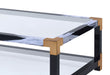 Modern Design: This sleek occasional coffee table features a clear tempered glass top and shelf, providing a modern touch to any living space with its open compartment and glassy bottom shelf.
