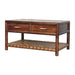 - Features: 100% solid mango wood,Chestnut finish,two compact drawers,brass handles,handcrafted,sustainable
