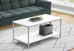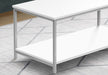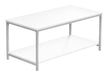 • Stylish Design: Enhance your living room with this modern cocktail table, featuring a two-tier laminate finish complemented by a striking metal leg base.