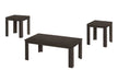 Dimensions: Coffee table measures 44 in. W x 22 in. D x 15 in. H; each end table measures 18 in. L x 16 in. W x 19 in. H.