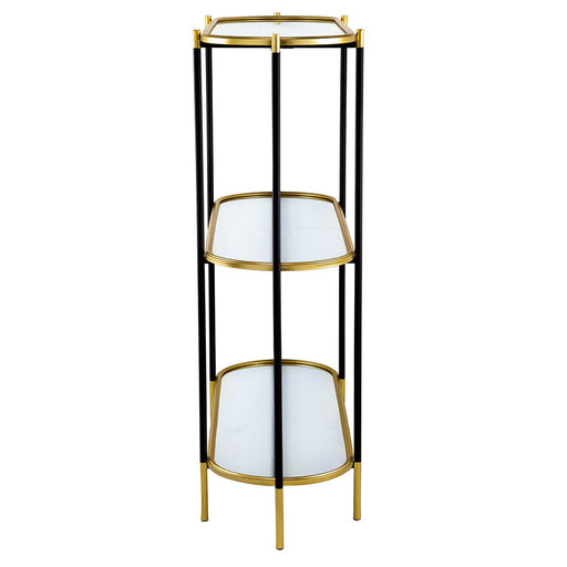 Elegant Design: The Bertram 3-Tier Metal Console Table features gold rims and black legs, adding a luxurious and modern chic feel to any home...