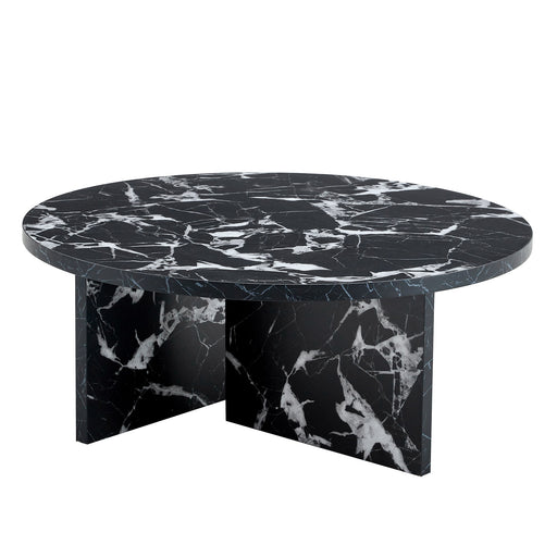 Modern Round Design: 31.5" diameter marble-look MDF top adds elegant contemporary style to any space Multi-Functional Surface: Spacious 13.98" hig...