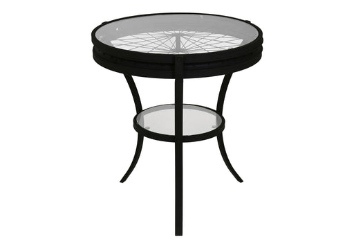 Stylish Design: This accent table features a sophisticated black hammered finish and a unique wheel spoke design on the surface, adding a tou...