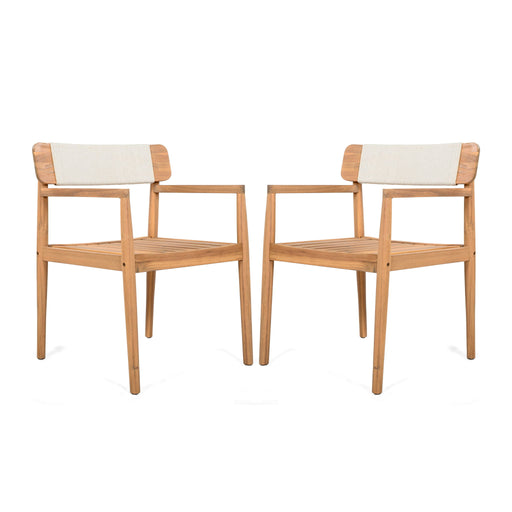 Creative Braided Acacia Wood Outdoor Dining Table And Chairs With Armrests (Set of 2) - Teak / White