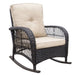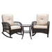 3 Pieces Conversation Set, Outdoor Wicker Rocker Patio Bistro Set, Rocking Chair With Glass Top Side Table - Brown / Beige