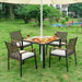 All Weather 5 Piece Patio Dining Table Set, Acacia Wood Table Top With Umbrella Hole, Rattan Outdoor - Coffee Brown27.32"W x 19.96"D x 25.39"H - 76.27 lb
