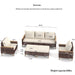 5 Piece Rattan Terrace Furniture Set, 7 Seats Cushions, High Footed Design