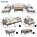 Flexible Layout Options: This versatile conversation set includes a loveseat, two single sofas, two ottomans, and a coffee table, allowing you to arrange it in multiple layouts to fit your space and style. Suitable for both indoor and outdoor use, it adapts well to gardens, patios, and balconies.