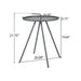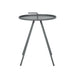 Modern Design: The side table features a modern aesthetic with its circular design, bold, straight legs, and clean lines. Its distinctive look is further enhanced by a carrying handle and four angled legs that contrast beautifully with the circular tabletop.