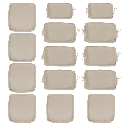 Complete Cover Set: Includes 14 pieces (6 seat covers: 25.6" L x 25.6" W x 3.9" H, 6 backrest covers: 25.6" L x 13.8" W x 3.9" H, 2 armrest covers...