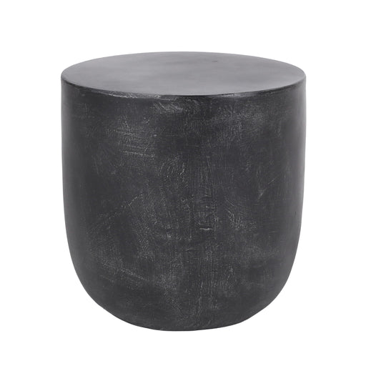 Outdoor Lightweight Concrete End Table With Natural Texture - Matte Black