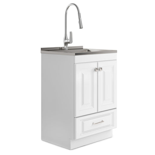 DIMENSIONS: Cabinet 28" W 34.25" H x 19" D Sink Depth: 10 inches Constructed using PB, MDF with PVC and Stainless Steel Cabinet is constructed wit...