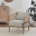 - Sturdy Construction: Rounded barrel chair with a solid wood frame in a natural finish.