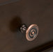 - Transitional design includes defined double molded top,tapered table legs and bronze rounded decorative knobs