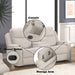 Convenient Features: Includes a manual motion mechanism, a console with storage, and armrests with additional storage. The console measures 10"L x 11"W x 6"H, and the armrest storage is 5"L x 13"W x 6"H.