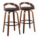 Grotto - Mid-Century Modern Fixed Height Barstool With Swivel With Round Footrest (Set of 2) - Walnut / Brown18.0"W x 19.0"D x 35.25"H - 14.0 lb