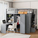 Full Size Loft Bed With Wardrobe, Desk And Shelves - Gray