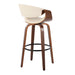 Stylish Design: The Symphony Fixed-Height Barstool by LumiSource features a unique silhouette and mid-century modern styling, making it an attractive addition to any space. Its design is enhanced by vertical tufting on the upholstery.