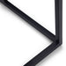 - Industrial design includes black metal frame and legs